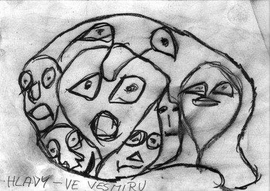 Dostalse sem, protože v atace akutní psychózy pomaloval čtyři patra koleje na Strahově lihovým fixem nejasným výpočty v rámci tak zvaného záchvatu automatického psaní... Sem ho podobně jako mě transportovala policie...Vypadá, alespoň v mých očích, asi takhle...
