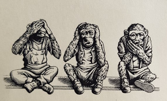 Je vykládán jako, nedívej se na zlo, neposlouchej zlo, neříkej zlo... Což je rovněž omyl.